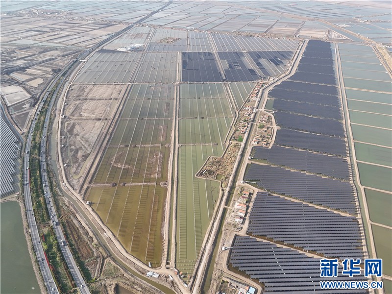 近日,在連云港經(jīng)濟(jì)技術(shù)開(kāi)發(fā)區(qū)猴嘴街道三峽青口鹽場(chǎng),近78萬(wàn)塊光伏板如波浪般起伏,深藍(lán)色板面倒映著魚(yú)塘的波光,蔚為壯觀。