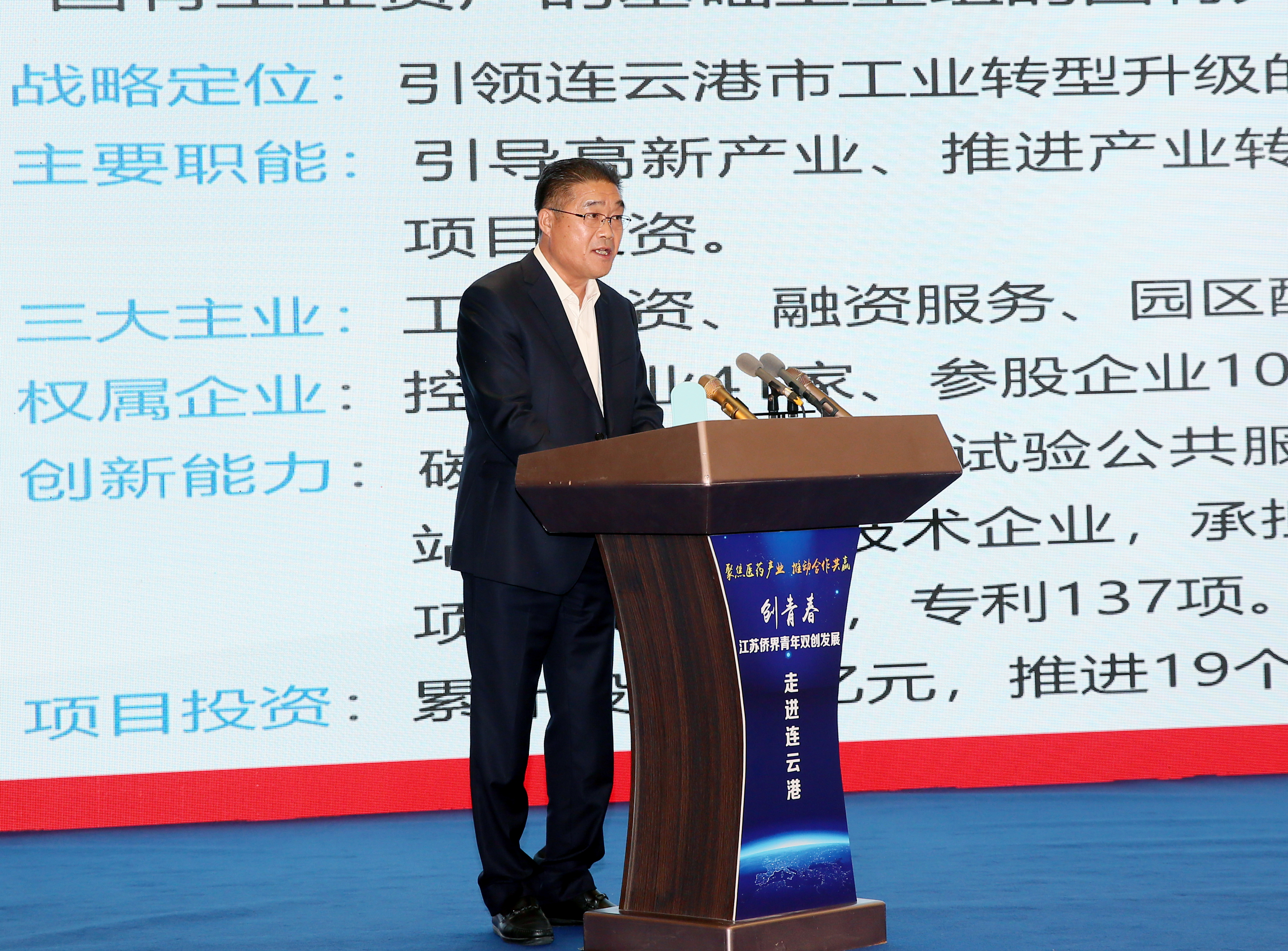 為深化醫(yī)藥技術(shù)交流合作,推動海內(nèi)外僑界資源與集團國際醫(yī)藥創(chuàng)新產(chǎn)業(yè)園需求有效對接,11月2日至3日,由江蘇省僑聯(lián)指導(dǎo),省僑青會、市僑聯(lián)、市工業(yè)投資集團聯(lián)合主辦的“創(chuàng)青春——江蘇僑界青年雙創(chuàng)發(fā)展·走進連云港”交流實踐活動成功舉行。連云港市委副書記、統(tǒng)戰(zhàn)部部長、市政協(xié)黨組副書記胡建軍,省僑聯(lián)二級巡視員李發(fā)勇出席活動,并分別致辭。集團公司黨委書記、董事長丁銳,副總經(jīng)理劉承志,總經(jīng)濟師陳如軍和來自全省的近50名僑青和僑商代表參加活動。