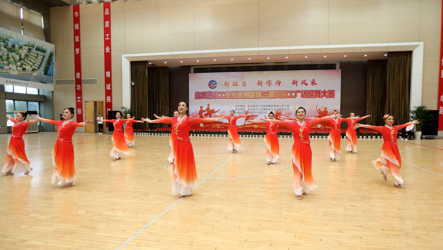 “新?lián)敗⑿伦鳛椤⑿嘛L采”,增進職工友誼,凝聚團隊力量。10月29日,由集團工會主辦,徐圩投資公司承辦的集團公司第三屆女職工廣場操舞大賽在徐圩新區(qū)體育館激情開賽,來自各單位的11支代表隊近150名女職工共同獻上一場精彩的文化盛宴。市婦聯(lián)副主席臧永明,集團公司黨委副書記戴鴻鳴、紀委書記汪群、工會主席劉承志等領導參加活動。