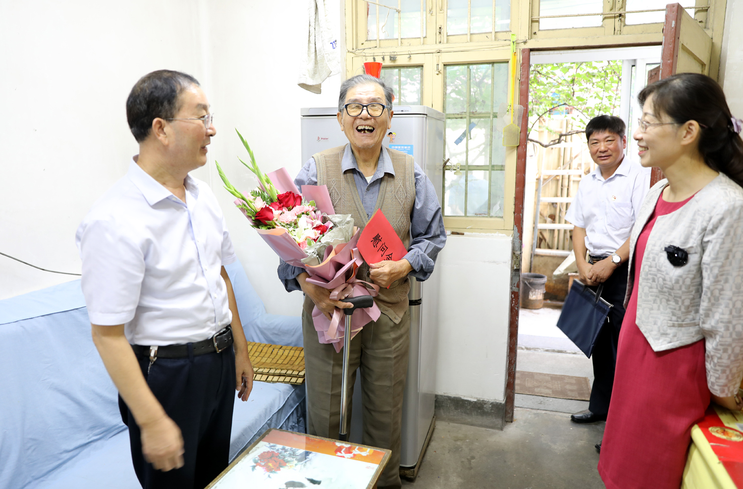 國慶前夕,9月29日上午,集團(tuán)公司董事長、黨委書記楊龍,總經(jīng)理胡建明、黨委副書記戴鴻鳴、紀(jì)委書記汪群等領(lǐng)導(dǎo)分組走訪慰問部分建國前參加工作的老黨員、老干部,為他們送去慰問金和鮮花,同慶新中國七十周歲華誕。