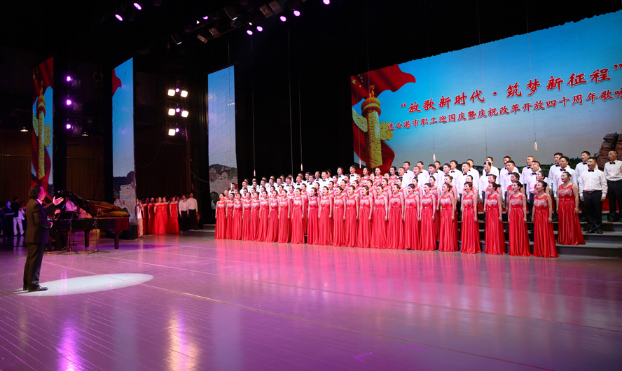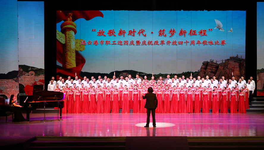 9月28日下午,由市委宣傳部、市總工會、市文廣新局聯(lián)合舉辦的“放歌新時代·筑夢新征程”——連云港市職工迎國慶暨慶祝改革開放四十周年歌詠比賽在市藝術中心隆重舉行。來自各縣區(qū)、各條戰(zhàn)線的16支代表隊參加比賽,經(jīng)過3個多小時緊張角逐,集團公司組織的100人合唱隊以《走向復興》、《天路》兩首激昂向上的歌曲脫穎而出,獲得一等獎。
