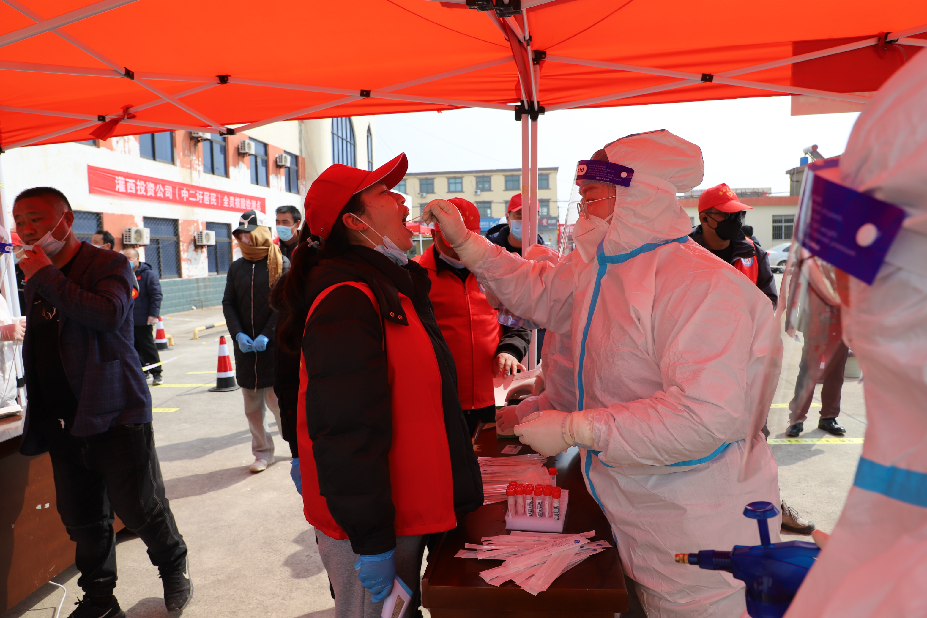 檢測當(dāng)天,上午7點半核酸檢測點準(zhǔn)備就緒,核酸檢測正式開始。檢測點用警戒線拉起通道,居民均按規(guī)定佩戴口罩有序排隊。排隊候檢的居民先登記身份信息及聯(lián)系方式,再由引導(dǎo)員帶隊到指定點位接受醫(yī)護人員的采樣,年紀大且腿腳不便的老人由現(xiàn)在志愿者攙扶,優(yōu)先進行核酸檢測。采樣完畢后,大家按照標(biāo)識盡快從出口處離開檢測點,減少人員聚集。同時,積極提醒檢測人員注意安全、保持一定安全距離。整個過程緊張有序,核酸檢測工作于下午5點左右順利完成。