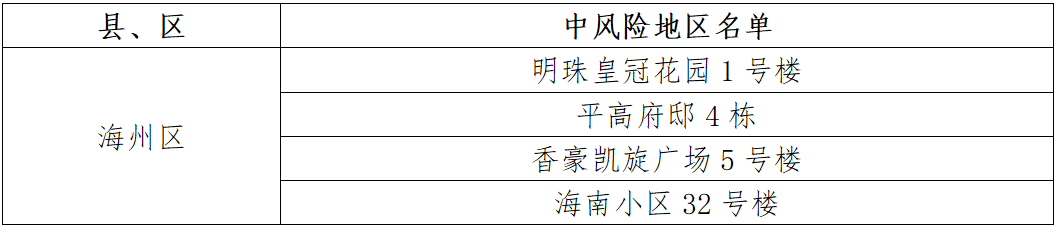 根據(jù)國務(wù)院聯(lián)防聯(lián)控機制有關(guān)規(guī)定,經(jīng)市指揮部研究決定,自發(fā)布之日起,對我市部分區(qū)域疫情風險等級進行調(diào)整:海州區(qū)寶泰商住樓、同科匯豐國際A5號樓、御景龍灣D6號樓、香溢世紀花城小區(qū)20號樓、馨海名郡18號樓、馨海名郡2號樓、南極南路60-1號樓由中風險地區(qū)調(diào)整為低風險地區(qū)。其他地區(qū)風險等級不變。調(diào)整后全市現(xiàn)有4個中風險地區(qū)。