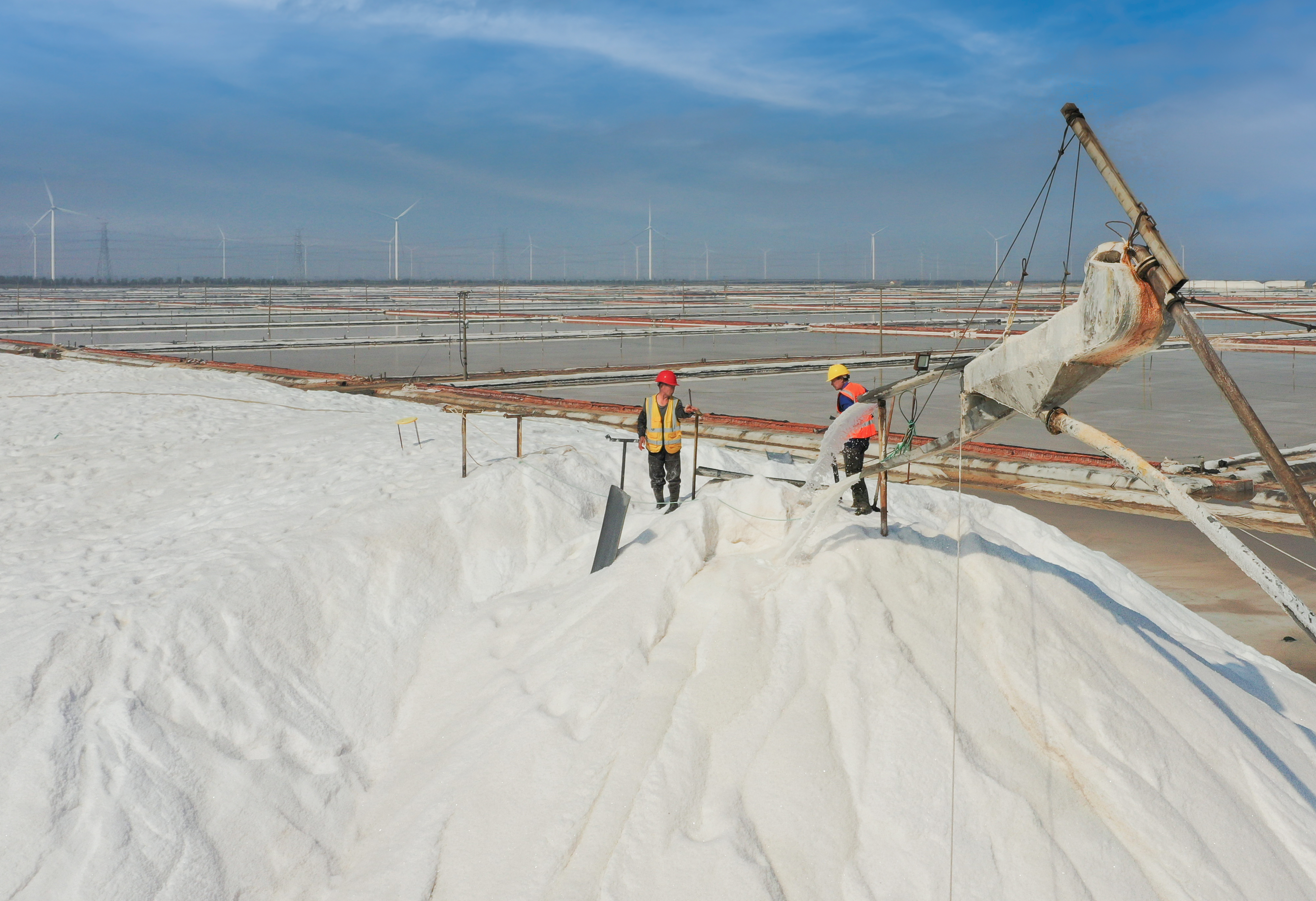6月10日,伴隨著一臺臺轟鳴的機(jī)器聲落下帷幕,日曬制鹽公司春季扒鹽40萬噸工作圓滿結(jié)束,在廣袤的鹽田里遠(yuǎn)遠(yuǎn)望去,只見一排排鹽廩在陽光的普照下,發(fā)出了耀眼的光茫。