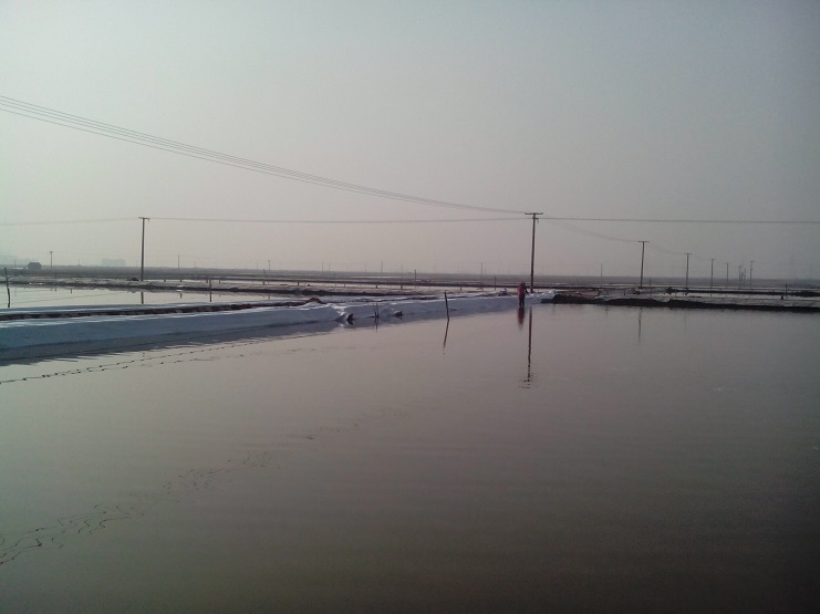 實業(yè)公司制鹽分公司,海鹽基地結(jié)晶區(qū)改造已近尾聲,灘場舊貌換新顏,放眼望去,海鹽基地灘場一片齊整。
