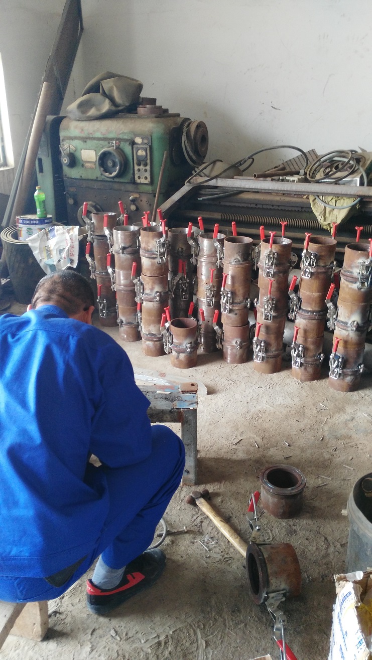 為提高扒鹽管道安裝速度,減輕鹽業(yè)工人勞動負(fù)荷,連日來,機(jī)電服務(wù)公司制作人員認(rèn)真進(jìn)行管道快接頭制作,他們分工負(fù)責(zé),2人專門焊接,4人進(jìn)行管道接頭安裝,預(yù)計本周五一臺機(jī)組63節(jié)管道,4個彎頭制作完成,下周進(jìn)行實(shí)際試用。(機(jī)電服務(wù)公司)