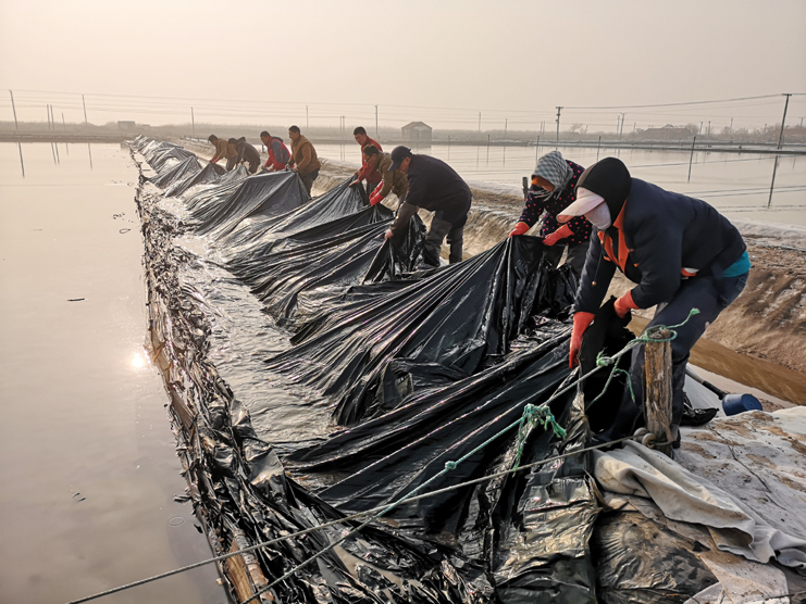 進入5月下旬,天氣時陰時晴,新河制鹽分公司積極組織勞動力,要求各班組做到扒鹽和塑布安裝相結合、相推進,截至當前,180塊計5400公畝塑布已經(jīng)安裝完畢,此項工作的完成對降低鹵耗,減少跑冒滴漏起著決定性作用。(程龍)