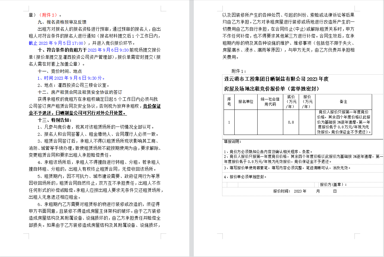 連云港市工投集團(tuán)日曬制鹽有限公司 房屋及場(chǎng)地對(duì)外公開招租公告