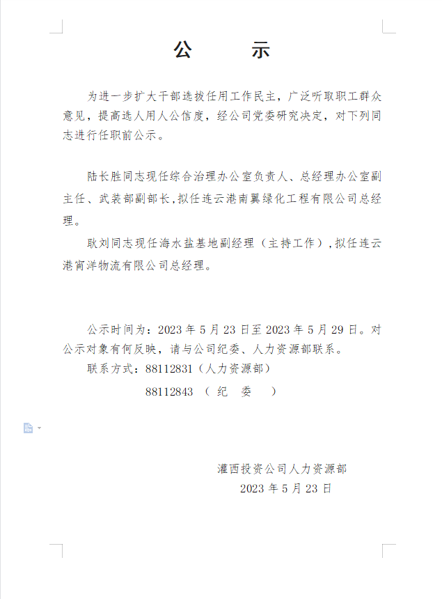 公 示