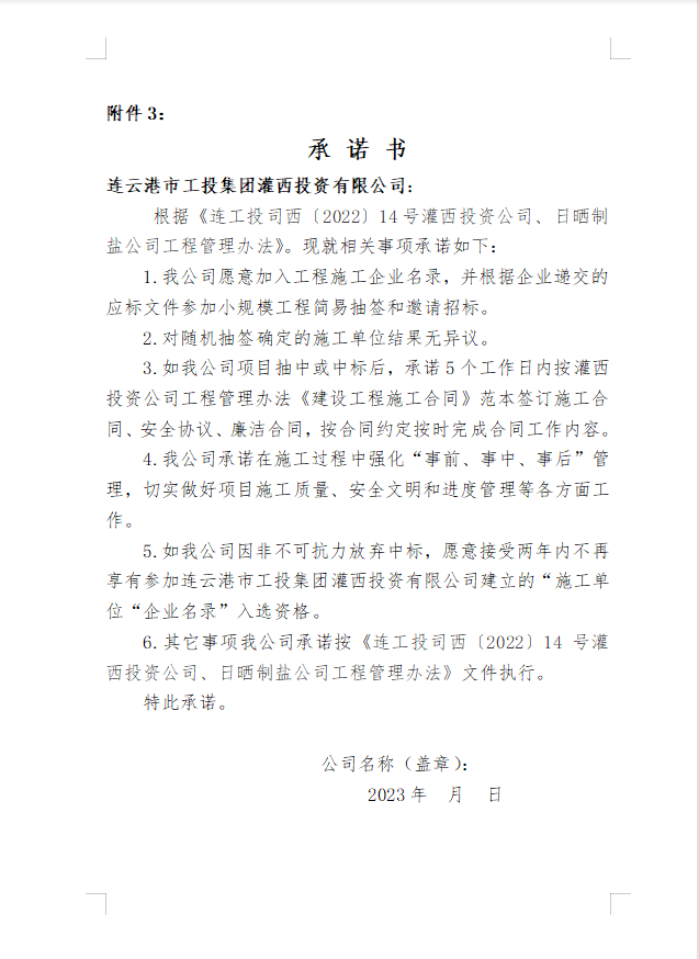 灌西投資有限公司 日曬制鹽有限公司關(guān)于建立國有資金投資小規(guī)模工程施工“企業(yè)名錄”的公告