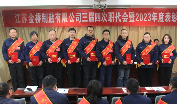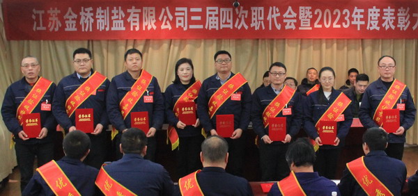 2月2日上午,金橋制鹽公司召開三屆四次職代會暨2023年度表彰大會。公司黨委書記、董事長、總經(jīng)理田磊作《工作報(bào)告》,黨委副書記、紀(jì)委書記、工會主席曹開明主持大會,公司領(lǐng)導(dǎo)班子成員及職工代表出席會議。