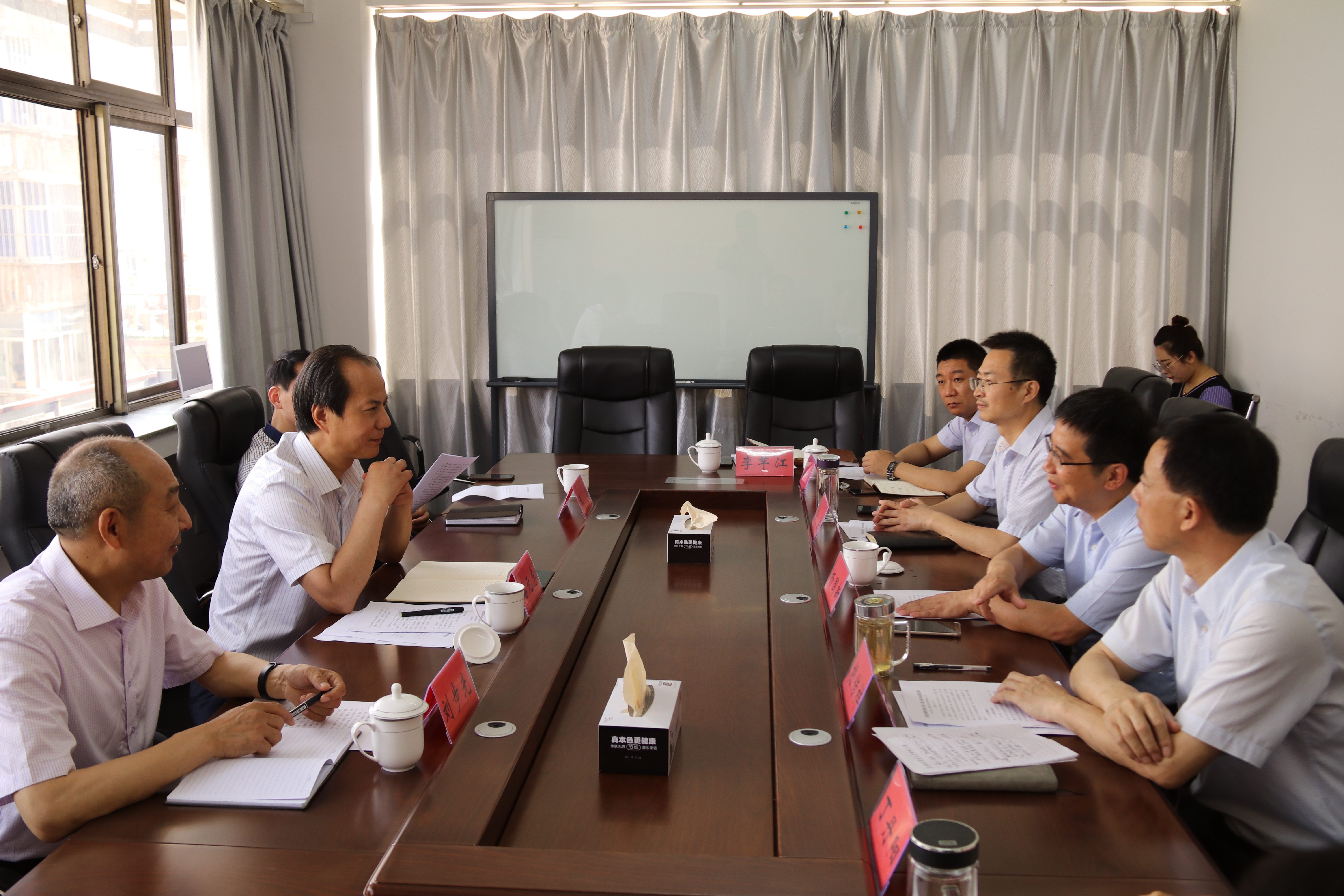 | 6月3日,連云港市地方金融監(jiān)管局潘元志局長、王成副局長、劉步光處長一行三人到格斯達(dá)擔(dān)保公司調(diào)研、指導(dǎo),集團(tuán)公司常務(wù)副總經(jīng)理?xiàng)顕录案袼惯_(dá)擔(dān)保公司相關(guān)負(fù)責(zé)同志參加了座談交流。