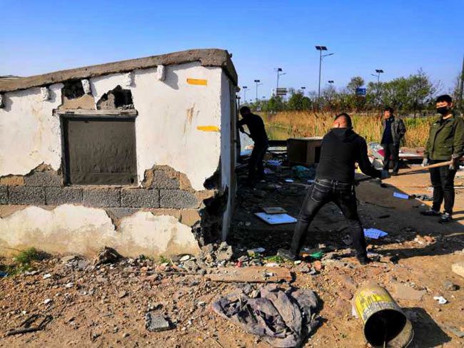 公司領(lǐng)導(dǎo)態(tài)度明確,一抓到底全面整治交通環(huán)境。摸清形勢(shì),多次召開(kāi)整治工作專(zhuān)項(xiàng)會(huì)議,安排部署整治行動(dòng) , 公司領(lǐng)導(dǎo)放棄節(jié)假日,現(xiàn)場(chǎng)辦公。三洋、黃沙、大新作為主要牽頭單位,主動(dòng)扛起責(zé)任,挑起擔(dān)子,從泰祥公司抽調(diào)人力,大家齊心協(xié)力。按照時(shí)間節(jié)點(diǎn),倒排工期,掛圖作戰(zhàn),針對(duì)現(xiàn)場(chǎng)工作內(nèi)容,制定 “三步工作法”。一是深入塘頭養(yǎng)殖戶(hù)面對(duì)面交流,講明利害關(guān)系,做通群眾思想工作,確保整治行動(dòng)順利進(jìn)行;二 是 制定好拆除先后順序,調(diào)配需要的挖掘機(jī)、運(yùn)輸車(chē)輛等硬件設(shè)施,確保拆遷過(guò)程快速有力;三 是 對(duì)于已拆除的看護(hù)房,及時(shí)清理房屋碎石塊,筑牢地基,安排重建。