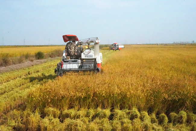 10月25日,天氣晴好。四臺收割機伴隨著喜慶的爆竹聲陸續(xù)開進稻田,拉開了大新農(nóng)場萬畝稻田開鐮序幕。黨委委員、副總經(jīng)理周緒祥在現(xiàn)場查看指揮。