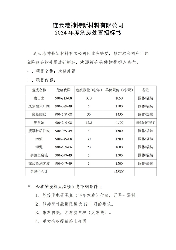 神特公司2024年危廢處置邀請招標(biāo)公告