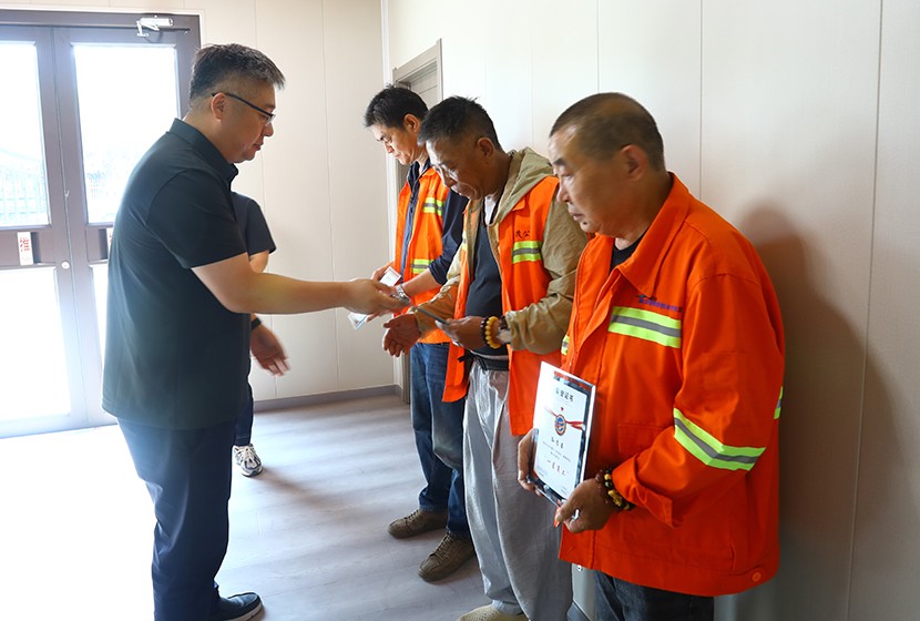 此次頒獎(jiǎng)打破傳統(tǒng)集中表彰模式,將頒獎(jiǎng)臺(tái)搬到生產(chǎn)建設(shè)最前沿,公司領(lǐng)導(dǎo)班子成員親自前往光伏安康驛站、創(chuàng)智綠園、大浦片區(qū)、云橋路施工現(xiàn)場(chǎng)、佟圩路施工現(xiàn)場(chǎng)、益豐園林園區(qū)6個(gè)一線點(diǎn)位,為獲獎(jiǎng)員工頒發(fā)榮譽(yù)證書,并送上暖心祝福。當(dāng)公司領(lǐng)導(dǎo)將“星級(jí)員工”證書遞到員工手中時(shí),獲獎(jiǎng)?wù)唠y掩激動(dòng):“這份榮譽(yù)既是肯定,更是責(zé)任。我會(huì)繼續(xù)扎根基層,為臺(tái)北(華茂)貢獻(xiàn)全部力量!”