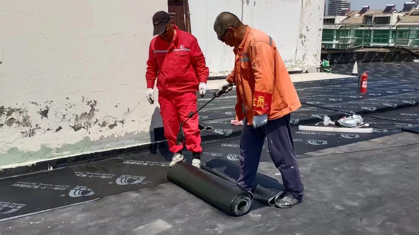 在昌圩湖大酒店樓頂防水工程施工現(xiàn)場(chǎng),因屋面漏水嚴(yán)重影響酒店日常經(jīng)營(yíng)。為了趕在雨季來臨之前完成全屋面防水工程,節(jié)日期間,有著“臺(tái)北防水第一人”稱號(hào)的丁祥生班長(zhǎng)帶領(lǐng)班組成員連日奮戰(zhàn)在施工現(xiàn)場(chǎng)。隨著噴槍烘烤著雨虹防水卷材,一米米的鋪設(shè)前進(jìn)不斷縮短著距離。