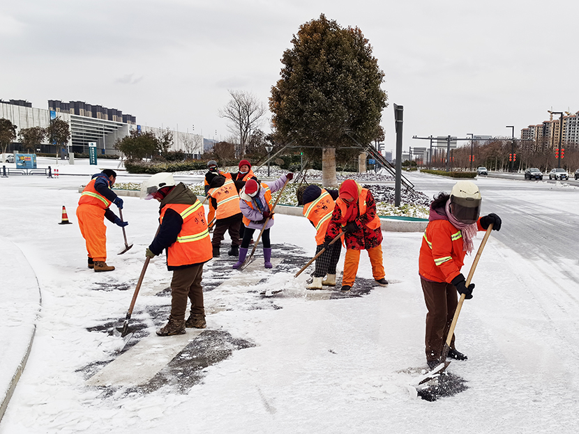 ? ? 此次掃雪除冰行動,采用人機結(jié)合方式,調(diào)派鏟雪車、裝載機等機械設備,對東方大道、黃海大道、花果山大道、242省道等主要干道人行便道、交叉路口,新海連大廈、火車站東站等重要地段的路面冰雪進行突擊清理;對各條干道的橋面及馬山立交橋、新光路下穿立交等坡度路面鋪灑氯化鈣除雪劑融化冰雪。