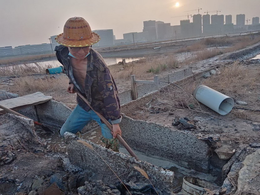 在海州灣大浦班組367畝的礦鹽生產(chǎn)灘地上,遠(yuǎn)遠(yuǎn)的看去,只有三個(gè)人在灘地上忙碌,分別是班長(zhǎng)孫和華和兩名鹽工。在十月份的時(shí)候,原大浦班組班長(zhǎng)夏軍帶領(lǐng)第一批鹽工前往海福特,孫和華因?yàn)樯眢w原因選擇了留下,此時(shí),生產(chǎn)班組人數(shù)減半,只剩下三人。新產(chǎn)業(yè)要開(kāi)發(fā),礦鹽復(fù)產(chǎn)也要攻堅(jiān),當(dāng)公司征求部分職工意見(jiàn),誰(shuí)愿意來(lái)做大浦班組的班長(zhǎng),維持礦鹽正常生產(chǎn)。大家心里都明白,這不是一份榮譽(yù),而是一份責(zé)任,是千斤重?fù)?dān),一片生產(chǎn)灘地只有三人,這是一個(gè)燙手山芋的活。這時(shí),孫和華站了出來(lái),他說(shuō):“我是一名老黨員了,黨員就是要平時(shí)看出來(lái)、困難站出來(lái)、危急豁出來(lái),為其他同志樹(shù)立黨員先鋒模范作用,這份擔(dān)子,理應(yīng)我來(lái)挑!”