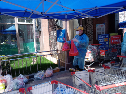“大爺,您好,拿什么菜?”早上8點(diǎn),海州防疫臨時(shí)黨支部的江海凌同志開(kāi)始一天的志愿服務(wù)。不過(guò),他今天“改行”了,不再是信息采集員,而是化身鄰居菜籃子的“守護(hù)者”。