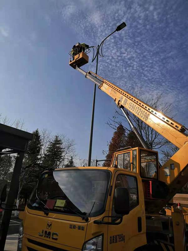 ?早已習慣了風餐露宿的翔立人,中午一碗面條、或是一碗蓋澆飯草草了事,飯后不休息,直接爬上高空作業(yè)車繼續(xù)工作,運輸隊圍繞著幾臺高空作業(yè)車也是忙個不亦樂乎,“加浦,像這樣將舊路燈立起來,先貼著車廂圍一圈,這樣可以多裝點”,既要負責將舊路燈收集送到甲方倉庫,又要領出來供給幾個隊的物料供應,同樣是忙的馬不停蹄。大家你追我趕,相互暗暗競爭者,賽安全,比質(zhì)量,趕進度。晚上收工后,翔立辦公群里各隊報工作量“一隊今天完成了18根桿”,“二隊今天干得最多了,他們完成20根桿,換了40個燈頭,不簡單啊”,“你也不錯嗎,一個人完成了16根桿,還想咋的”,“今天俺們隊的工具不得手,明天我們隊一定要超過你們”,群里大家相互鼓勵著!