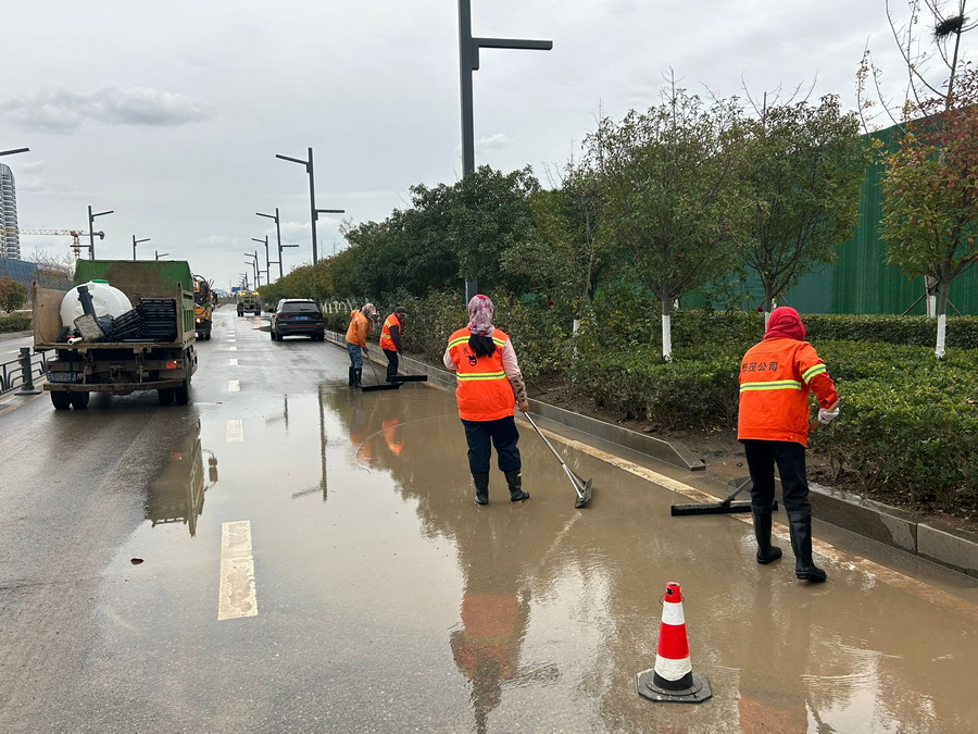 這次任務(wù)不同于以往,不僅有大范圍、高頻次的道路沖洗,更有大面積覆蓋防塵網(wǎng),大片區(qū)清掃落葉,由于時(shí)間緊迫,無法同班組長坐下來布置,王斌、陳大壹便利用吃飯時(shí)間進(jìn)行討論。他們按照“重大活動有預(yù)案,重點(diǎn)現(xiàn)場有人跟,重要路段有人保”的原則提前考察了出行主要路線和主要觀摩地點(diǎn),對照班組人數(shù)進(jìn)行細(xì)化分工,為了更加精確的將工作計(jì)劃進(jìn)行落實(shí),他們到現(xiàn)場挨個(gè)同每個(gè)班組長進(jìn)行溝通協(xié)調(diào),有問題現(xiàn)場解決、有堵點(diǎn)現(xiàn)場調(diào)配。