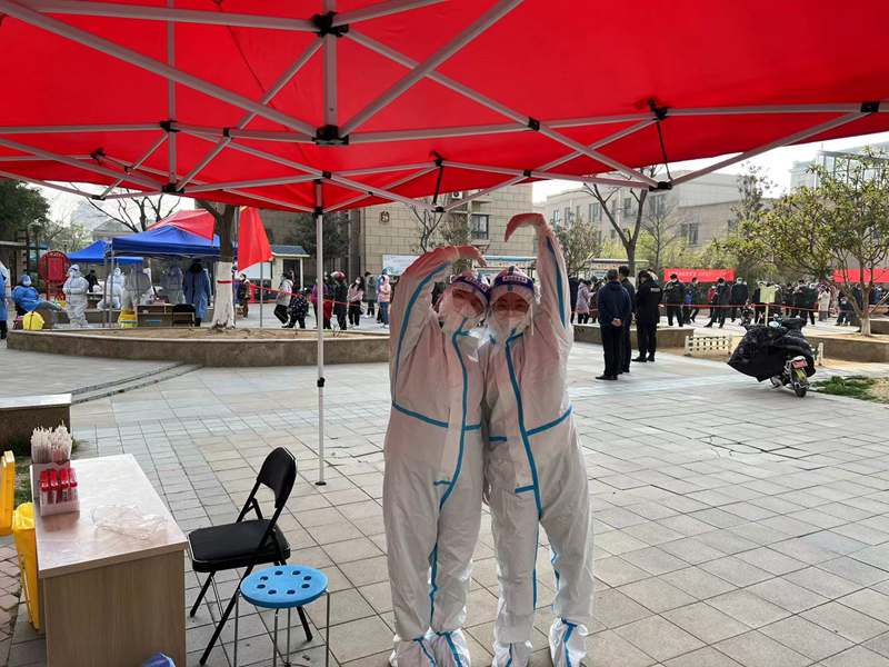 16:00,檢測進(jìn)入尾聲,忙里偷閑和大家聊會天,身邊的“大白”來自各行各業(yè),疫情防控戰(zhàn)打響,在這危難時刻,我們一同挺身而出,臨危受命,“逆行”沖往防疫第一線。大家聽從指揮、主動擔(dān)當(dāng)?shù)木唧w行動,充分體現(xiàn)了年輕黨員能打硬仗、敢打硬仗的優(yōu)良品格!