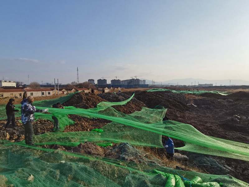 一名黨員就是一面旗幟,十余處山丘上,不只是一面“黨員突擊隊”旗,而是幾十上百面的“戰(zhàn)旗”。在鮮紅旗幟的引領(lǐng)下,僅僅一天時間,突擊隊員們“沖鋒陷陣”,攻克一個又一個“山頭”,鋪設(shè)800余張防塵網(wǎng),共計200余畝裸土。