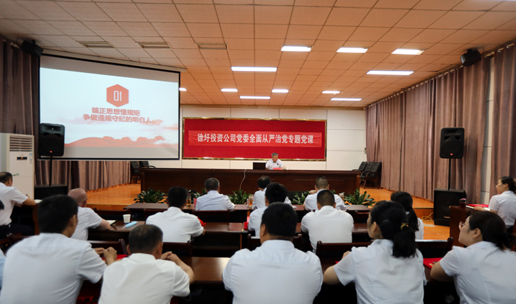 ? ? ? 會上,投資公司黨委書記、董事長、總經(jīng)理莊清付以《強化紀律規(guī)矩、提高執(zhí)行能力》為題,給與會人員上了一堂全面從嚴治黨專題黨課。