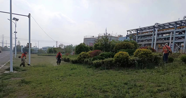 板橋工業(yè)園區(qū)祥和路、云港路、瑞和路等路段,隨處都可見到綠化工人忙碌的身影,他們不畏辛苦,搶時間、抓進度,對綠籬、綠化苗木進行修剪造型。園區(qū)路邊,機器轟鳴,除草工作有條不紊。綠化工人們頭戴防護帽,架著割草機,動作嫻熟,割草效率極高。三人一排、兩人一對,齊頭并進,戰(zhàn)線推進過的地方?jīng)芪挤置鳎粝乱黄R的坡面,賞析悅目。經(jīng)過多日持續(xù)奮戰(zhàn),已經(jīng)完成綠地雜草清理15萬平方米,綠籬修剪3萬平方米任務。為高標準完成二季度綠化管養(yǎng)目標奠定基礎。(劉永)