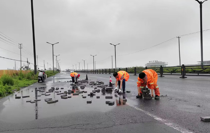 中午12時,保潔分公司接到徐圩城建應急處理電話,港前大道向南處近2000多米長路面存在大量拋灑磚塊,對過往車輛造成極大安全隱患,極易引發(fā)安全事故,嚴重影響行車安全。該分公司了解情況后,立即組織安排突擊隊員進行及時清理。現(xiàn)場,3名身著橘紅工作服的養(yǎng)護人員首先擺放了安全警示錐,隨后徒手進行拋灑物的撿拾工作。經(jīng)過3個多小時的努力,累計搬運磚塊近800多塊,及時消除了安全隱患。該路段又恢復了往日的干凈整潔,車輛通行安全暢通。(楊波)
